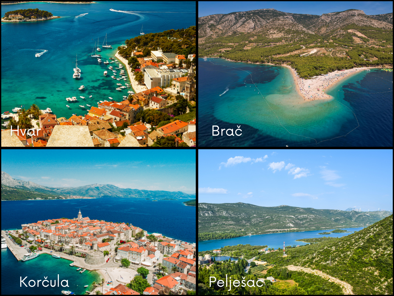 Brač słynie z plaży Złoty Róg, która zmienia swój kształt pod wpływem fal i wiatru. Wyspa oferuje również malownicze miasteczka, takie jak Supetar i Bol, oraz możliwość wspinaczki na Vidovą Górę, najwyższy szczyt na wyspach Adriatyku.